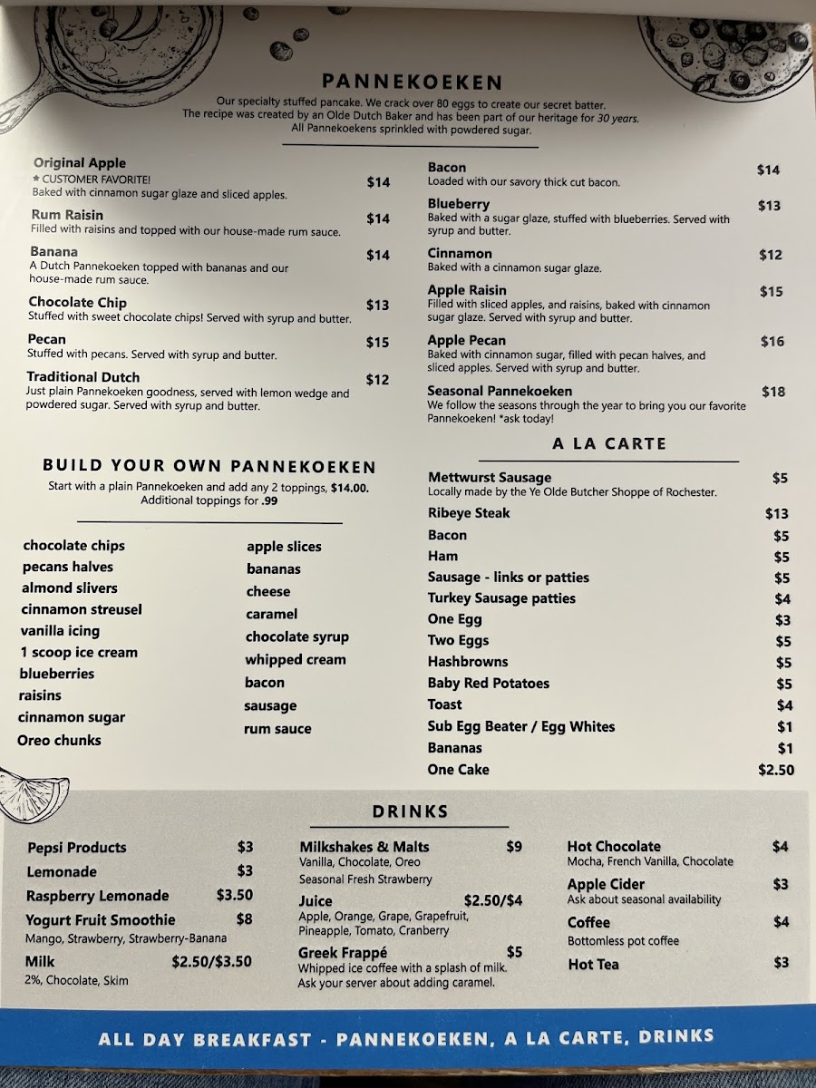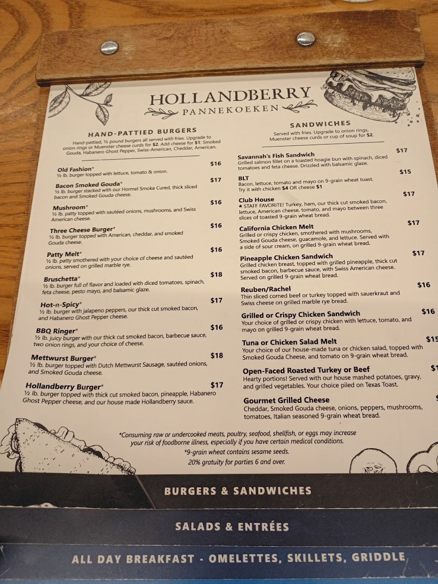 Hollandberry Pannekoeken is a charming family restaurant and café located in the heart of Rochester, MN, renowned for its authentic Dutch-inspired menu. The star here is their pannekoeken—large, thin pancakes offered in unique seasonal varieties like White Chocolate Macadamia Nut and Cranberry Rum, each bursting with rich, distinctive flavors. Beyond pancakes, the breakfast omelettes captivate with generous fillings such as locally sourced mettwurst sausage, Dutch Gouda, and fresh vegetables, embodying comfort and tradition in every bite.